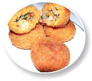 İçli patates köftesi için patatesleri haşlayın ve soyup çatalla ezerek püre haline getirin. Ilınınca yumurta, rende kaşar peyniri, tuz, karabiber ve ufalanmış ekmeği ilave edip karıştırın. Hamurunuz yumuşaksa biraz daha ekmek ekleyin. Kıyılmış soğanı yağda pembeleştirip kıymayı ilave edip kavurun. Daha sonra mantarları da koyup yaklaşık 5 dakika pişirdikten sonra altını kapatıp bezelye, tuz ve karabiberi ilave edin. Hazırladığınız püreden mandalina büyüklüğünde parçalar alıp oval şekil verin. Ortasını parmağınızla oyarak iç malzemeden ve kaşardan koyup tekrar şekil vererek veya bir miktar daha patates püresini yassılaştırıp kapatarak parçaları birleştirip oval şekli verin. Bu işlemi yaparken ufak bir kasede ara sıra elinizi ıslatarak yapışmamasını sağlayın. Köftelerin girebileceği genişlikte bir kasede yumurtaları çırpın. Diğer bir kaseye de makineden geçmiş ekmeği koyun. Köfteleri önce çırpılmış yumurtaya, daha sonra ekmeğe bulayıp kızgın yağda çevirerek altın sarısı olacak şekilde kızartın. Afiyet olsun.