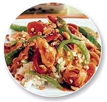 Pirinçli tavuk yemeği için ilk olarak pirincimizi pişirelim. İster pilav ister haşlam şeklinde yapabilirsiniz. Öte yandan sarımsağı soyup ince ince kıyalım, ardından soya sosu, sirke ve yarım tatlı kaşığı acı biber sosu ile karıştıralım. Biberleri yıkayıp ikiye bölelim ve çekirdeklerini çıkaralım. Tekrardan yıkadıktan sonra ince şeritler halinde doğrayalım. Havucu ayıklayıp yıkadıktan sonra ince şeritler halinde doğrayalım. Tavuk etini temizleyip küçük parçalar halinde doğrayalım. Sıvı yağı, bir tavada kızdırıp tavukları 5 dakika kadar kavuralım. Üzerine havucu ekleyip sürekli karıştırarak kavurmaya devam edelim. Önceden hazırlamış olduğumuz sarımsaklı sosu ve biberi tavaya ilave edip, et ve havuç pişene kadar kavuralım. Hazırladığımız karışımı tuz ve acı biber sosu ile aromalı hale getirdikten sonra, arzu ettiğimiz şekilde pişirdiğimiz pirinç eşliğinde servis yapalım. Afiyet olsun.