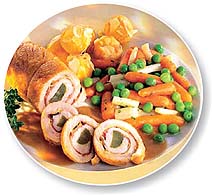 Sebzeli hindi sarma için ilk olarak hindi etini temizleyip biraz inceltelim. Üzerine un, tuz, karabiber ve kekik serperek lezzetlendirelim. Hardal da sürdükten sonra etlerin üzerine birer dilim jambon ilave edelim. Turşuları ikiye bölüp en üste ekleyelim ve eti rulo haline getirip bir kürdanla sabitleyelim. Diğer yandan soğanları soyup küp küp doğrayalım. Hindi sarmaları yapışmaz tavada ve kızgın yağda kızartalım. Soğan, tavuk suyu ve limon suyunu ekleyip biraz pişirelim. Üzerini kapatıp orta ateşte 20 dakika pişmeye bırakalım. Bu arada patates kroketleri ve sebze garnitürünü paket üzerindeki tarife göre fırında veya tavada hazırlayalım. Hindi sarmaları tavadan alıp soğumayacak şekilde bekletelim. Süt kremasını sosa ekleyip 5 dakika pişirelim ve tuz, karabiberle tatlandıralım. Sarmaları patates kroket, sebze garnitürü ve sos eşliğinde tabaklara paylaştırıp servis yapalım. Dilerseniz baharatlarla da süsleyebilirsiniz. Afiyet olsun.