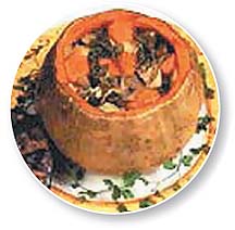 Balkabağı güveçte için kıÜüabağın sap kısmından yuvarlak bir kapak keselim. Kabağın çekirdeklerini ve liflerini temizleyelim, bir fırın tepsisine yerleştirdikten sonra içini dolduracak kadar kaynar su ekleyelim. Sonra kestiğimiz kapağı üzerine kapatıp yumuşayıncaya kadar pişirelim. Piştikten sonra suyu kepçeyle alalım. Dış kabuğuna zarar vermeden büyük bir kaşıkla kabağın içini çıkartalım ve içleri miksere koyup püre yapalım. Listedeki tüm sebzeleri küp şeklinde doğrayalım. Bir tencerede tereyağını kızdırıp arpacık soğanlarını bütün olarak pembeleştirelim. Pırasaları ve sarımsakları ilave edip ara sıra karıştırarak 5 dakika hafif ateşte yumuşayıncaya kadar pişirelim. Unu ilave edip karıştırarak köpürene kadar 2 dakika pişirelim. Tavuk suyunu, doğranmış tavuk göğsünü ve kabak püresini ayrı bir tencereye koyalım. Küp küp doğrayıp suya koyduğumuz kerevizleri süzüp, tuz, pulbiber ve karabiberle birlikte tencereye ilave edelim. Kaynadıktan sonra 20 dakika hafif ateşte pişirelim. Kereviz sapları ve şalgamları da katıp 20 dakika daha pişirelim. Domates, kabak küpleri ve kekiği ilave edip 10 dakika pişirelim. Ocaktan alınca limon suyunu ilave edelim. Güvecin içine doldurarak servis yapalım. Afiyet olsun.