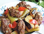 Fırın sebze için; ilk olarak maydanozu kıyıp yarısından azını ayıralım. Kalan maydanozu, ezilmiş sarımsak ve sirkede ıslatılıp sıkılmış ekmek içi ile birlikte kıymaya ilave edelim. Rendelediğimiz kaşar peynirini, 1 yumurtayı ve malzeme listesindeki baharatları da ilave edelim. Tüm malzemeleri yoğurup ceviz büyüklüğünde köfteler hazırlayalım. Fırını 180 dereceye ayarlayalım. Patlıcan ve domatesleri aynı kalınlıkta dilimleyelim. Yağlanmış fırın kalıbına domates, patates ve patlıcan dilimlerini değişimli olarak dizelim. Üzerine karabiber, kekik ve tuz serpelim. Kalan yumurtaları tuz, galeta unu ve sütle köpük köpük oluncaya kadar çırpalım ve patlıcanların üzerine gezdirerek dökelim. Fırında 20 dakika pişirelim. Köfteleri kızgın yağda kızartalım. Peçete üzerine alıp yağını çektirelim. Fırından çıkardığımız sebzenin üzerine köfteleri yayalım. Üzerine ayırdığımız maydanoz ve kıyılmış taze soğan saplarını serptikten sonra sıcak olarak servis yapalım. Afiyet olsun.