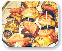 Yalancı kebap için ilk olarak patlıcanları alacalı olarak soyup, her birini boyuna 4 dilime bölelim. Dilimlediğimiz patlıcanları tuzlu suda bekletelim. Diğer yandan, dövülmüş tavuk bifteklerini patlıcan uzunluğunda ve patlıcan genişliğinde keselim. Soğanı rendeleyelim. Tuz, karabiber, köri ve sıvı yağı karıştırıp, kesilen tavukların üzerine ince bir tabaka şeklinde yayıp bekletelim. Daha sonra tuzlu suya bıraktığımız patlıcanları süzüp, kurulayalım. Ardından kızgın yağda hafifçe kızartalım. Tavadan aldıktan sonra bir peçetenin üzerine çıkararak fazla yağını süzelim. Kızarmış ve yağı süzülmüş patlıcanların üzerine, hazırladığımız tavukları alalım ve üzerine ince kıyılmış maydanoz serpelim. Patlıcanları rulo yapıp, kürdanla tutturalım ve bir tepsiye dizelim. Ayrı bir kaseye domatesleri rendeleyim. Sarımsağı ezip, sivri biberi ince kıyalım. Soya sosu, karabiber ve kekiği ilave edip karıştıralım. Tepsideki patlıcanlara bu sosu ekleyelim. Üzerini folyo ile kapatıp 200 dereceli fırında 25 dakika pişirelim. Pişmeye yakın folyoyu tepsinin üzerinden alalım. Üzerini kızartıp, fırından alalım ve sıcak olarak servis yapalım. Afiyet olsun.