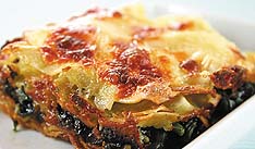 Ispanaklı lazanya için ilk olarak fırın kabının altını yağlayalım. 1 çorba kaşığı margarini tavada eritip; mantar, arpacık soğanı ve sarmısağı sote edelim. Ispanağı ince ince kıyın ve çedar peyniri, muskat rendesi, fesleğen, tuz ve karabiberle birlikte mantarlara ilave edelim ve bir kenara ayıralım. Kalan margarini başka bir tencerede kısık ateşte eritelim, unu da ekleyip birkaç dakika kavuralım. Sütü yavaşça ekleyip sosu pütürsüz kıvama gelene kadar çırpalım. Çeyrek su bardağı kaşar peynirini ekleyip tuz ve karabiberle tatlandıralım. Lazanyayı tuzlu suda dirice haşlayıp süzelim. Yağlanmış fırın kabına ıspanaklı mantar karışımının yarısını serelim. Üzerini lazanyayla kapatın ve peynirli sosun yarısını dökelim. İkinci kat için aynı işlemi bir kez daha tekrarlayalım. Hazırladığımız lazanyayı önceden 200 dereceye ısıtılmış fırında 30 dakika, peynirlerin üzeri kızarıncaya kadar pişirin ve sıcak olarak servis yapalım. Afiyet olsun.