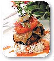 Beyinli kebap için, patlıcanları alacalı soyup 4'er dilim halinde doğrayalım. Üzerlerine tuz serpip yaklaşık yarım saat bekletelim. Bir tavaya sıvı yapı koyup patlıcanları kızartalım. Kızarttığımız patlıcanları delikli kepçe ile başka bir kaba alalım. Diğer yandan eti kemiğinden ayırıp 6 parçaya bölelim ve kızgın yağda soğanla beraber kavuralım. Soğanlar pembeleşince, kabuklarını soyduğumuz domatesleri yemeklik doğrayarak onları da ilave edelim. Sıvı yağı katalım, tuzunu ayarlayıp ılık su dökelim. Bu şekilde 1,5 saat kaynatalım. Bu arada beynin zarını soyarak tuzlu su içinde yaklaşık 15 dakika haşlayıp suyunu süzelim. Etler yumuşayınca delikli kepçe ile ayırarak kızarttığınız patlıcan dilimlerini üzerlerine kapatalım, bir başka dilimle de ters yönden ete saralım. İkişer patlıcan dilimine sarılı bu etleri tepsiye dizelim. Ilınan beyni 6 eşit parçaya bölelim ve patlıcanların üzerine yerleştirelim. Üzerlerine halka şeklinde dilimlenmiş domatesler koyalım. Et suyunu tepsidekilerin üzerine gezdirerek kapağını kapatalım ve kısık ateşte yaklaşık 40 dakika pişirdikten sonra sıcak olarak servis yapalım. Afiyet olsun.