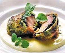 Lahanalı sazan için filetoları tuz ve limon suyu ile karıştıralım. Pırasaları yıkayıp saplarını küçük parçalar halinde doğrayalım. Kırmızı soğanı da soyup yemeklik olarak doğrayalım. Beyaz lahanalara soğuk uygulayarak rengini açalım ve kağıt havlu ile kurulayalım. Zeytinyağını kızdırıp pırasa ve kırmızı soğanı tavada sote edelim. Üstüne kırmızı toz biber, tuz ve karabiberi de ekleyip karıştırdıktan sonra ocaktan alıp soğumasını bekleyelim. Diğer yandan beyaz lahanaları yayıp üzerlerine hazırladığımız soğanları koyalım. Sazan filetolarını lahanalarla saralım. Sıvı yağı tavada kızdıralım ve hazırladığımız ruloları her iki tarafı da kızaracak şekilde pişirelim. Patateslerin kabuklarını soyalım ve küp şeklinde doğrayalım. Küçük bir tavada arpacık soğanı, sarmısak ve sebze suyu ile karıştırıp üzerine tuz, hindistancevizi ve mercanköşk ekleyelim. Pişene kadar kaynatalım. Daha sonra ateşten alıp blendırla karıştıralım. Ruloları dikkatlice krema içine yerleştirelim. Patates püresini tabağa yayıp üzerine lahanalı sazan rulolarını yerleştirelim. Arzuya göre süsledikten sonra servis yapalım. Afiyet olsun.