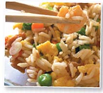 Kızarmış pilav için tencereye 1.5 su bardağı kaynar su koyalım ve tuz atalım. Orta ateşte kaynadıktan sonra içine pirinci atalım ve suyu çekene kadar pişirelim. Pişen pirinci hafifçe altüst ederek soğuması için bekletelim. Bu esnada tavuk göğsünü zar büyüklüğünde kesip üzerine 1 yemek kaşığı soya sosu ve yarım tatlı kaşığı toz şekeri ekleyip karıştıralım ve bir süre bekletelim. Havucu da zar büyüklüğünde kesip bezelye ile birlikte diriliği gitmeyecek şekilde yaklaşık 10 dakika haşlayıp süzelim. Taze soğanı yıkayıp ince halkalar şeklinde doğrayalım. Bir kasenin içine yumurtaları kıralım. 1 tatlı kaşığı taze soğan ve bir fiske tuz ekleyip çatalla iyice çırpalım. Tavaya 1 yemek kaşığı sıvı yağı koyalım. Yağ kızınca, yumurtalı karışımı boşaltıp tahta bir kaşıkla hızlı hızlı çevirerek pişirelim. Bir yandan da yumurtaları kaşıkla küçük parçalara bölelim ve pişen yumurtaları bir kaseye alalım. Tavanın içine 2 yemek kaşığı yağı ekleyip iyice kızdıralım. Arkasından tavuğu ekleyip birkaç dakika çevirmeden bekleyelim. Daha sonra kaşıkla hızlı hızlı çevirerek 5 dakika kavuralım. Bezelyeyi, havucu ve taze soğanları ekleyip, hepsini 1 dakika boyunca hızlı ateşte kavuralım ve 1 yemek kaşığı soya sosunu ekleyelim. Sebzelerin üzerine haşlanmış pirinci boşaltıp ısınana kadar yüksek ateşte hepsini birlikte kavuralım. Son olarak pişmiş yumurtaları da ekleyip, dikkatlice karıştıralım ve sıcakken servis yapalım. Afiyet olsun.