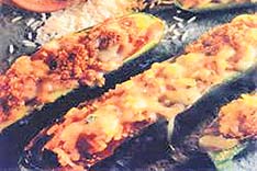 Kabak dolması için ilk olarak her kabağı uzunlamasına ikiye bölelim. Kabakların ortasındaki etli kısmı çıkartalım. Çıkardığımız kısımları ince ince kıyalım. Soğan ve sarımsağı da soyduktan sonra çok ince şekilde doğrayalım. Teflon bir tavada zeytinyağını hafifçe kızdıralım. Doğranmış kabak içini, soğanı, sarımsağı ve arzu ettiğiniz baharatları birlikte sote edelim. Tavayı yaklaşık 5 dakika ateşte tutalım. Diğer yandan pirinci yıkayıp haşlayalım. Daha sonra iyice süzüp, domatesle birlikte tavaya alın ve 10 dakika kadar pişirelim. Önceden ortasını boşalttığımız kabakların içine ilk olarak jambonu serelim. Üzerine, hazırlamış olduğumuz pirinçli karışımdan koyalım. Çedar peyniri ve ufaladığımız kuru ekmekleri serpiştirdikten sonra yüksek ısıdaki fırına atıp 25 dakika, peynir eriyip ekmekler kızarıncaya kadar kızartalım. Dilediğimiz çeşitli otlarla süsleyip, servis yapalım. Afiyet olsun.