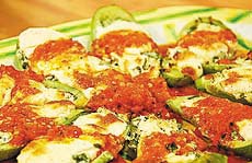 Peynirli kabak için; kabakların kafa kısımlarını kesip soymadan yıkayalım. Dikey olarak ortadan ikiye bölelim ve içlerini oyalım. Bir tencereye su, bir yemek kaşığı sıvı yağ ve bir tatlı kaşığı tuz koyalım. Kabakları da tencereye koyup harlı ateşin üstüne yerleştirelim. Kaynadıktan 5 dakika sonra tencereyi ateşten alalım ve kabakları bir süzgece koyarak bekletelim. Diğer yandan beyaz peynirin üzerine zeytinyağını dökelim ve çatalla iyice ezelim. Yoğurdu ilave edelim. İnce kıyılmış dereotu ve pulbiberi ekleyelim. İyice karıştırıp pürüzsüz hale gelmesini sağlayalım. Karışımın içerisine 1 yumurta kıralım ve karıştırarak krema kıvamına getirelim. Hazırladığımız bu harcı kabakların içlerine dolduralım ve içerisine 2 yemek kaşığı sıvı yağ koyduğumuz fırın kabına yan yana dizelim. Kabakların üzerine, sulandırarak çatalla çırptığımız yumurta sarısını sürelim. Fırın kabını, önceden 200 derecede ısıtılmış fırına koyalım. Kabakların üzeri iyice kızarınca kabı fırından alalım ve servis tabağına aldığımız kabakları, dereotu ile süsleyerek servis yapalım. Afiyet olsun.
