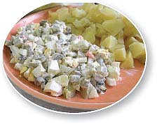 Mayonezli levrek tarifi için ilk olarak balıkları iyice temizleyelim. Yıkadıktan sonra bir tencereye balıkların üzerini örtecek kadar kaynar su, defne yaprağı, tuz, tane karabiber, maydanoz kökü, yarım limonun suyu ve kabuğunu ilave edelim ve 30 dakika kadar kaynatalım. Kaynadıktan sonra tencereyi ocaktan alalım. Balıklar soğuduktan sonra deri ve kılçıklarını çıkarıp etlerini ufak parçalara ayıralım. Öte yandan patatesleri haşlayıp, küp küp doğrayalım. Taze soğanın beyaz kısmı ince ince kıyalım. Salatalık turşusunu karelere bölüp, maydanoz ve dereotunu kıyalım ve hepsini mayonezin yarısına tuzla birlikte karıştıralım. Servis tabağına yerleştirelim. Kalan mayonezin bir kısmı ile üzerini kapatalım. Arzuya göre pişmiş yumurta, turp, zeytin, turşu ve mayonezin geri kalanı servis yapın. Afiyet olsun.
