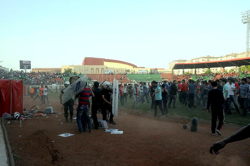 Spor Toto 3. Lig 2.Grup'ta Play-off rövanş maçı Yeni Diyarbakırspor-Denizli Büyükşehir Belediyespor müsabakasında, son dakikada verilen penaltı sonrası olaylar çıktı. Tribündeki taraftalar, sahaya girerek rakip takım ve hakemlere saldırdı. Çıkan olaylarda 25 taraftar ve 5 polis yaralandı. Maç uzatmalarda iken bitmeden ertelendi.