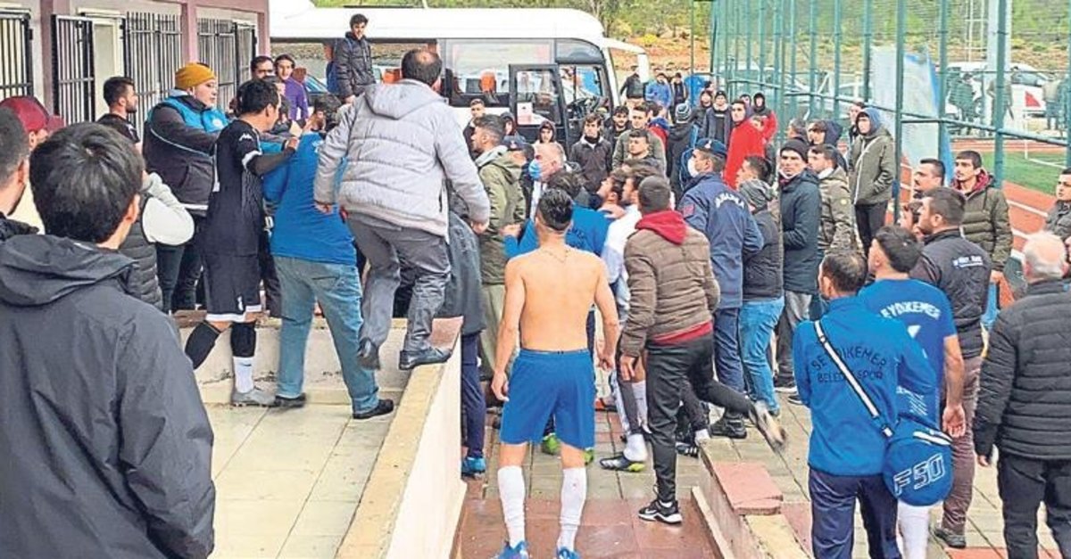 MUĞLA Süper Amatör Lig'de Ortaca Belediyespor ile Seydikemer Belediyespor arasında oynanan Play-Off sıralama maçının ardından futbolcular ve taraftarlar arasında kavga çıktı. Fethiye Beşkaza Futbol Sahası'nda oynanan maçta Ortaca'nın 90. dakikada bulduğu penaltı golüyle 1-0 sona erdi. Golün ardından Seydikemerli taraftarlar pozisyonun penaltı olmadığını ileri sürerek hakeme tepki gösterdi. Futbolcular sahadan çıktığı sırada iki rakip oyuncuları arasında yaşanan sözlü tartışma bir anda kavgaya dönüştü. İki futbolcu birbirine yumruk attı. Çevredeki taraftarlar ile diğer futbolcuların da karıştığı kavga jandarma ekiplerinin müdahalesiyle sona erdi. ■ MURAT YALÇIN