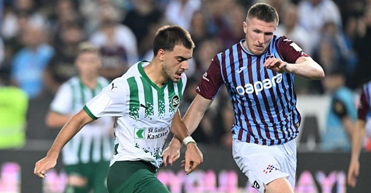 UEFA Konferans Ligi Play-Off turu rövanş maçında Trabzonspor, İsviçre ekibi St. Gallen'e normal süresi ve uzatmaları 1-1 biten maçta penaltılar sonucu 5-4 yenilerek Konferans Ligi'ne veda etti. 31. dakikada ani gelişen St. Gallen atağında topla birlikte ceza sahası içine giren Akolo'nun pasında arka tarafta topla buluşan Schmidt'nin ayağının içiyle vuruşunda meşin yuvarlak ağlara gitti: 0-1. 45. dakikada Orsic'in şutunda kaleci Lawrence Ati topu kornere çeldi.