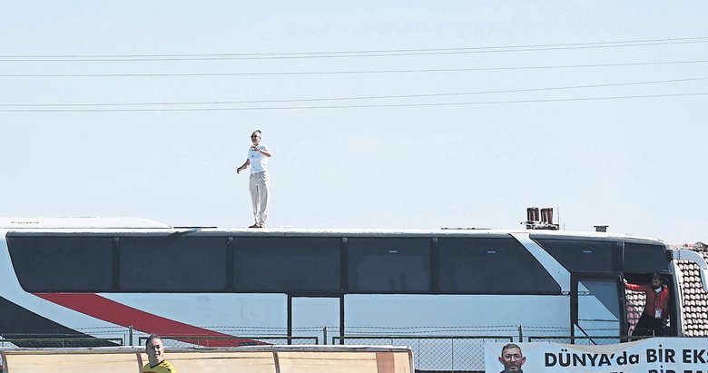 Pınar Konca, "Kadınlar olarak her yerde, her meslekteyiz. Çoğu kişi o otobüsün üstüne çıkamaz ama ben takımım için bunu yaptım" dedi.