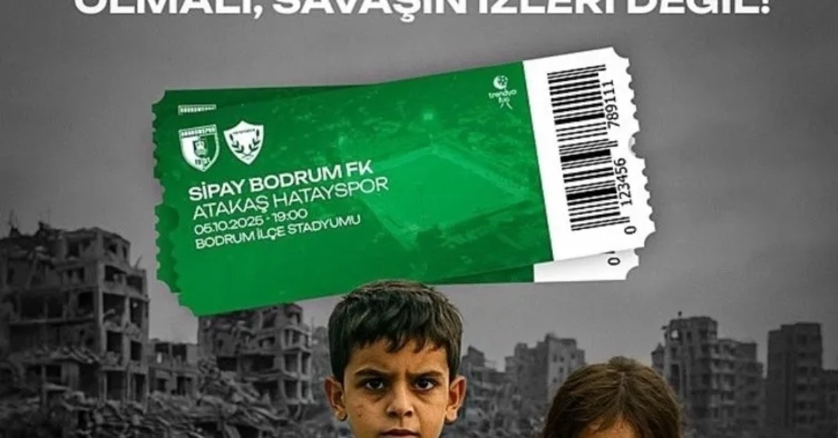 Pazar günü saat 19.00'da Hatayspor'u konuk edecek olan Bodrum ekibi, resmi sosyal medya hesabından yaptığı açıklamada, "Çocukların ellerinde oyuncak olmalı, savaşın izleri değil!