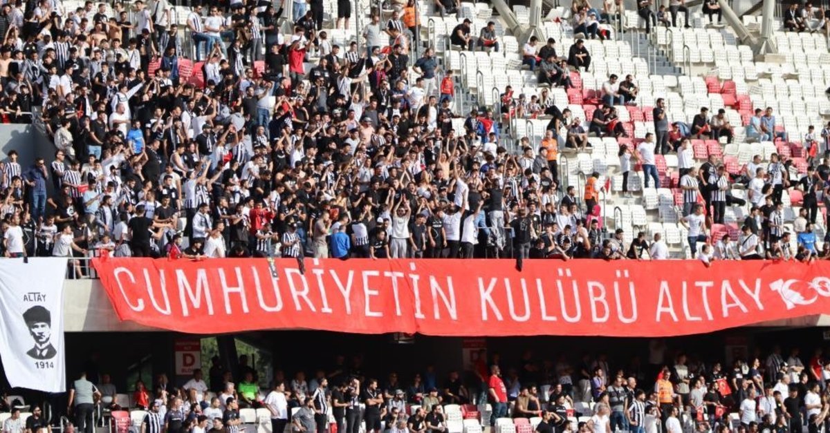 Cumhuriyet'in 100. yılını kutlayan Altaylı oyuncular, kritik Sakarya karşılaşmasının öncesinde ısınmak için sahaya 'Yaşasın Cumhuriyet' yazılı tişörtler ile çıktı. Cumhuriyet coşkusunun yaşandığı Alsancak Stadı'nda marşlar ve besteler yankılandı. Taraftarlar, Türk bayrakları ve tişörtleriyle tribünleri renklendirirken 100. yıl coşkusu Alsancak'ta tavan yaptı. Altay taraftarı, Sakaryaspor ile oynanan mücadeleye fazla ilgi göstermedi. Altay Başkanı Ayhan Dündar'ın ve yönetimin camiaya destek çağrısına rağmen protokol tribünü de boş kaldı.