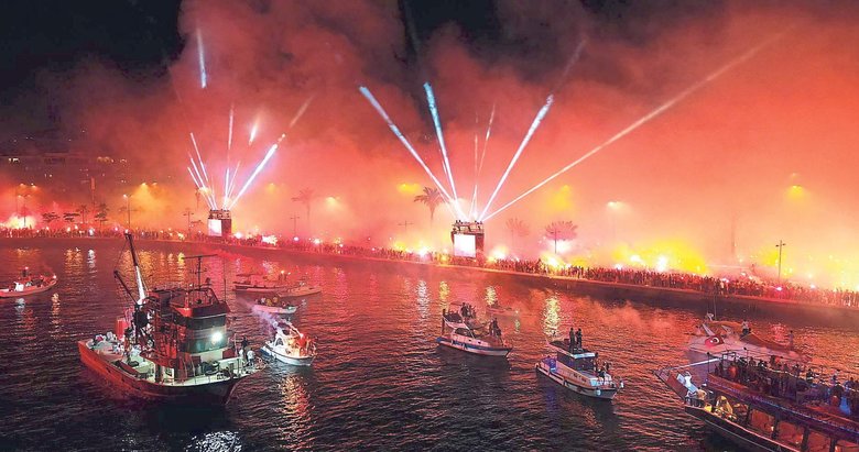 Saat 20.30 itibarıyla DJ performansı ve görsel ışık şovlarıyla başlayan etkinlikler, kutlamaların ilk kıvılcımını yaktı. Göztepe'nin 100 yıllık tarihine dair özel video gösterimleri, marşlar ve belgesel kesitleri dev ekranlarda yayınlanırken, taraftarlar sık sık tezahüratlarla atmosfere eşlik etti. Gece saat 22.00'ye geldiğinde ise yıllardır geleneksel hale gelen meşale şovu bir kez daha büyüleyici görüntülere sahne oldu. Sahil boyunca kilometrelerce uzanan Göztepeliler, ellerindeki meşaleleri aynı anda yakarak İzmir Körfezi'ni kırmızıya bürüdü. SAAT 22.00'DE ŞOV BAŞLADI