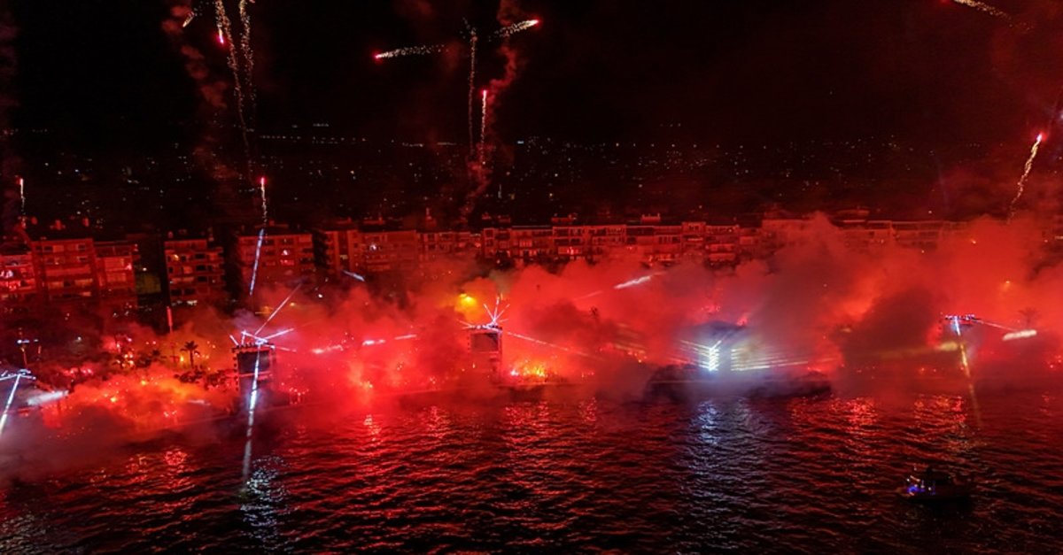 Dev ekranlar, DJ performansları, ışık ve lazer gösterileriyle başlayan gece, saat 22.00'de meşale şov ve işaret fişekleriyle adeta doruğa ulaştı. Göztepe taraftarı, kilometrelerce sahil hattını aynı anda yaktıkları meşalelerle kırmızıya boyarken, ortaya çıkan görüntüler sosyal medyada binlerce kez paylaşıldı. Sarı-kırmızılıların gerçekleştirdiği kutlamalar sadece İzmir'de değil, Türkiye genelinde de büyük beğeni topladı.