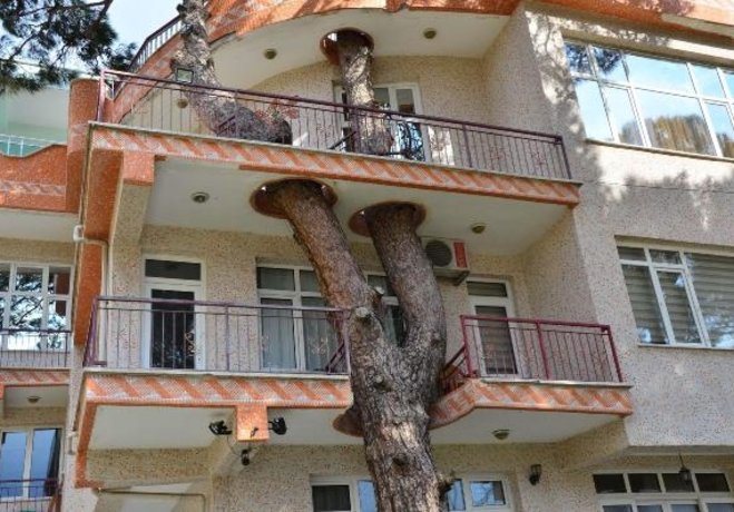 2004 yılında, 325 yıllık kızılçam ağacı kesilmeden inşa edilen binanın projesi, ağaca göre yeniden çizildi. O günden bu yana 16 metre yüksekliğinde ve gövde çapı 320 santim olan çam ağacı görenlerin ilgisini çekiyor. Binanın bitişiğinden başlayan ağaç, ikinci ve üçüncü katın balkonlarından geçerek terasa çıkıyor.