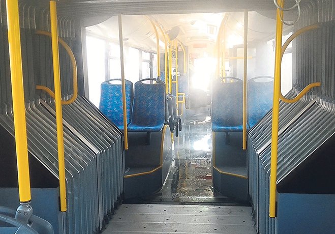 Herkes ne olduğunu anlamaya çalışırken, otobüsün tavanından kaynar sular dökülmeye başladı.