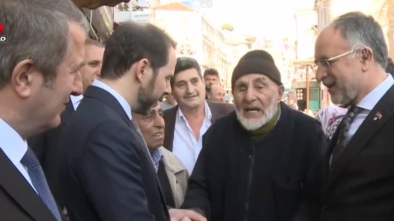 Bakan Albayrak'ın esnaf ziyaretine yaşlı dede duasıyla damga vurdu