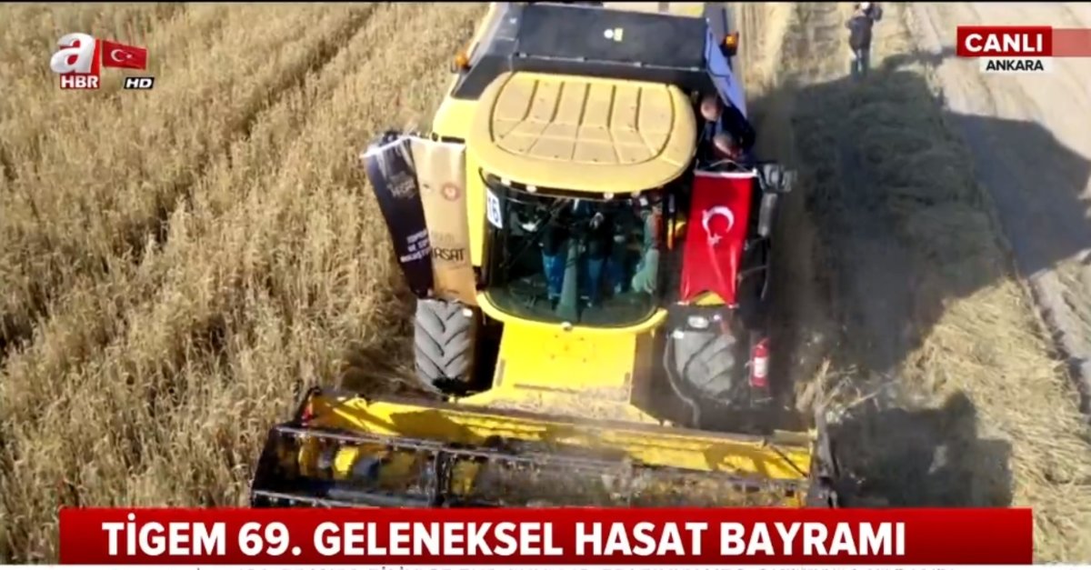 Başkan Recep Tayyip Erdoğan, TİGEM 69. Geleneksel Hasat Bayramı'na katıldı. Başkan Erdoğan, biçerdöverde buğday hasatı yaptı.