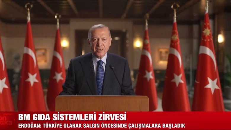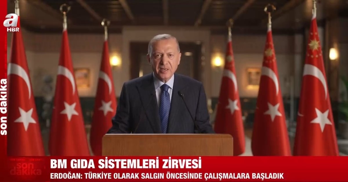 Başkan Erdoğan, Birleşmiş Milletler Gıda Sistemleri Zirvesi'ne video mesaj gönderdi. Erdoğan mesajında "Yeterli besleyici ve güvenilir gıdaya erişim, bir imtiyaz değil herkes için bir haktır. Evlatlarımıza daha adil, daha yaşanabilir, daha müreffeh bir dünya bırakmak da hepimizin ortak görevidir. Türkiye olarak, bu yönde çalışmayı kararlılıkla sürdürüyoruz" dedi.