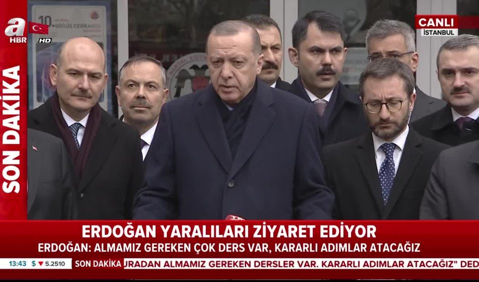 Başkan Erdoğan, arama kurtarma çalışmalarının devam ettiği Kartal'daki enkaz alanında incelemelerde bulundu. Ardından enkazdan çıkan yararlıları ziyaret etmek için Kartal Lütfi Kırdar Eğitim Araştırma Hastanesi'ne geçti. Erdoğan ziyareti sonrası açıklamalarda bulundu.