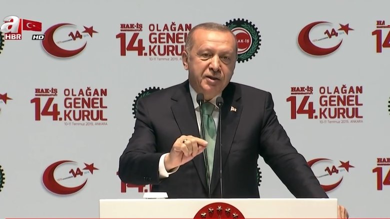 HAK-İŞ 14. Olağan Genel Kurulu'nda konuşan Başkan Recep Tayyip Erdoğan, CHP'li Bolu Belediyesi'ndeki işçi kıyımına yönelik sert açıklamalarda bulundu. Erdoğan, "Bolu Belediyesi'nde işçilerin kapıya konulmasını kınıyorum. Akşam başka, sabah başka yalan söyleyenleri de milletime şikayet ediyorum. Bir kapı kapanır, binlerce kapı açılır. Hukuk yoluyla haklarımızı sonuna kadar savunacağız." ifadelerini kullandı.