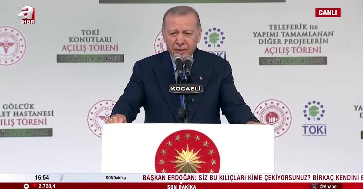 Başkan Recep Tayyip Erdoğan Kocaeli'nin Gölcük ilçesinde düzenlenen açılış töreninde önemli açıklamalarda bulundu. Başkan Erdoğan Gebze-Darıca sahil metro hattı için çalışmaların hızlandığını ifade ederken "Bu hattı da 2025 yılı sonunda hizmete açmayı planlıyoruz." ifadelerini kullandı. Lafla çevrecilik yapmadıklarını belirten Başkan Erdoğan "Haliç'i temizlediğimiz gibi inşallah İzmit Körfezi'ni de pırıl pırıl yapacağız." dedi.