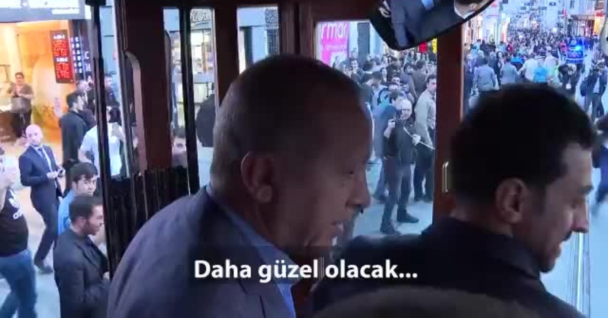 Başkan Recep Tayyip Erdoğan, nostaljik tramvayla hareket esnasındayken bir vatandaşın 'Her şey güzel olacak' sözüne cevaben 'Daha güzel olacak' cevabını verdi. Başkan Erdoğan o anları sosyal medya hesabından paylaştı