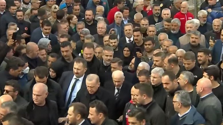 Başkan Recep Tayyip Erdoğan ve MHP Lideri Devlet Bahçeli, Kahramanmaraş merkezli depremlerden etkilenen bölgelerde incelemelerde bulunmak üzere Adıyaman'a geldi.