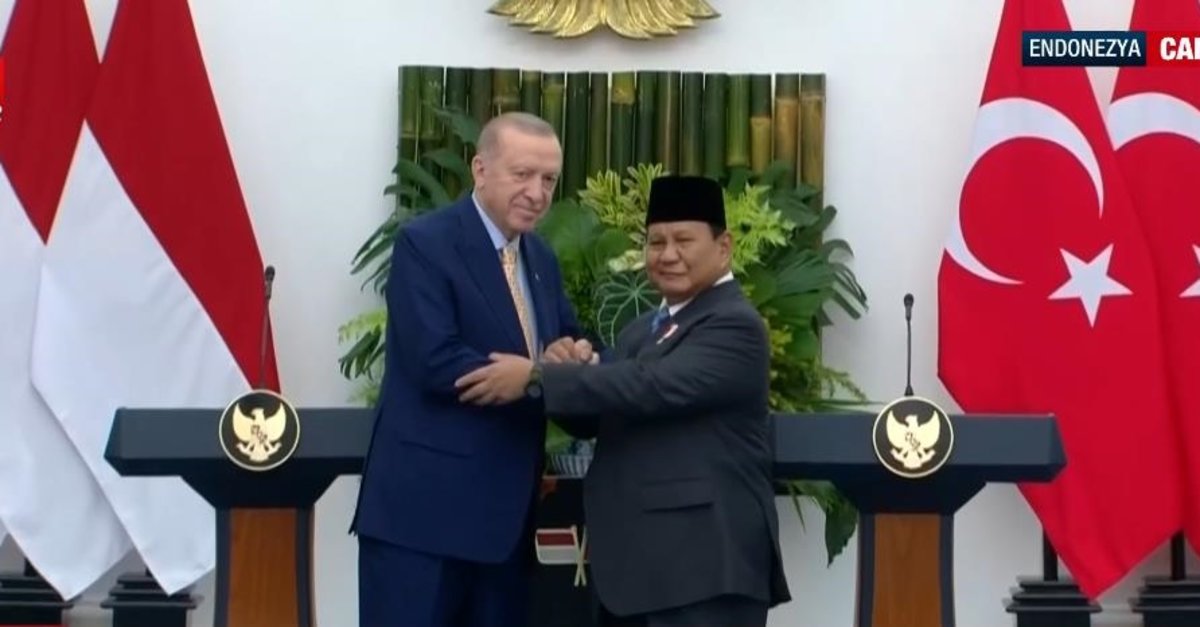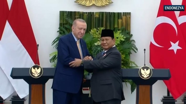 Başkan Recep Tayyip Erdoğan, Endonezya'da Cumhurbaşkanı Prabowo Subianto ile düzenlenen ortak basın toplantısında önemli açıklamalarda bulundu. Erdoğan, çeşitli alanlarda 12 anlaşmanın yapıldığını ifade ederken 'Hedefimiz 10 milyar dolar ticaret hacmi. Bugün ilişkilerimizi daha da kurumsallaştırdık.' dedi.