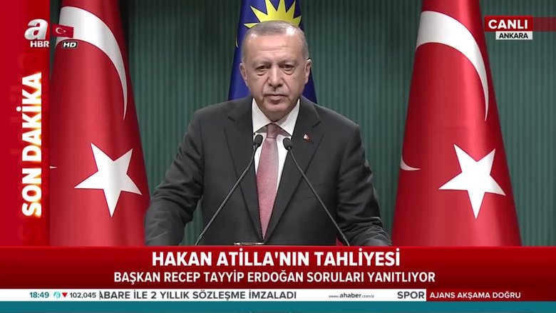 Başkan Recep Tayyip Erdoğan Malezya Başbakanı Mahathir Muhammed ile ortak basın toplantısında konuştu. Hakan Atilla’nın tahliyesiyle ilgili sorulan soruya yanıt veren Başkan Erdoğan, “Yaşamış olduğu süreç bizi üzmüş ve kırmıştır. Bizim için Hakan Atilla'ya herhangi bir bariyer söz konusu değildir. O bizim evladımızdır. Onu sahiplenmeyeceğiz kimi sahipleneceğiz.” ifadelerini kullandı