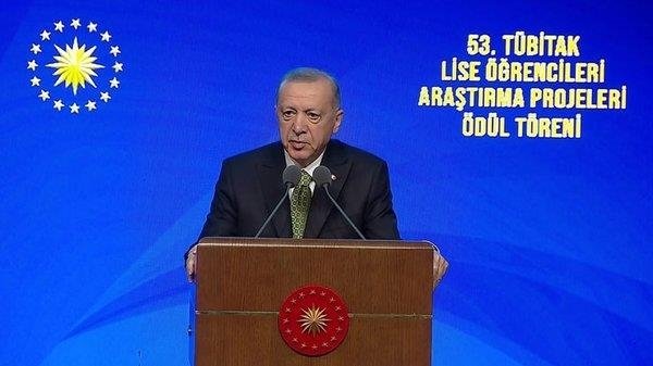 Başkan Recep Tayyip Erdoğan, Beştepe Millet Kongre ve Kültür Merkezi'nde Lise Öğrencileri Araştırma Projeleri Final Yarışması ve Ödül Töreni'nde konuştu. Başkan Erdoğan, "2003 yılından beri ücretsiz olarak bu ders kitaplarını işte bu yüzden veriyoruz. Şu ana kadar 4 milyar kitabı ücretsiz dağıttık. Yardımcı kaynakları da dağıtmaya başladık. Önümüzdeki yıl bir yenilik daha yapıyoruz. Ders kitapları ile yardımcı kaynakları da öğrencilerimize teslim edeceğiz. Bu yeni uygulamanın öğretmen ve öğrencilerimize hayırlı olmasını diliyorum." dedi.