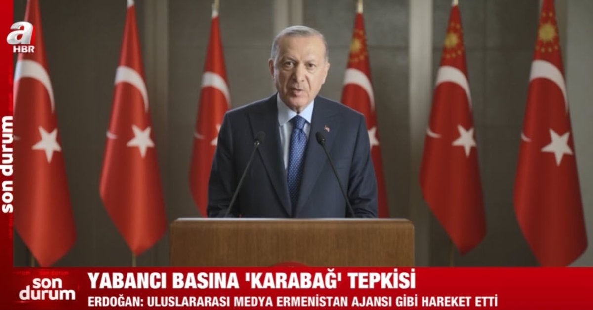 Başkan Recep Tayyip Erdoğan Türk Konseyi Medya Forumu'na video mesaj gönderdi. Başkan Erdoğan: Türk dünyası olarak bu hususta insiyatif almalı, tecrübe paylaşımına gitmeli, güç birliği yapmalı ve elimizdeki imkanları en etkili şekilde değerlendirmenin yollarını aramalıyız. Köklü geçmiş güçlü gelecek temasıyla düzenlediğimiz forumun bizlere bu noktada güçlü bir platform kazandıracağına inanıyoruz. ifadelerini kullandı. Erdoğan, "Dijital faşizmin yıkıcı etkisinden ne kadar gelişmiş olursa olsun hiç bir ülke ve toplum azade değildir. Türk dünyası dijital faşizmin yanı sıra uluslararası medyanın çifte standardından da muzdariptir. Özellikle 44 gün süren Dağlık Karabağ savaşı sırasında şahit olduğumuz iki yüzlü tavır meselenin ülkelerimiz açısından önemini ortaya koymuştur. Ermenistan ordusunun sivil hedef alan katliam ve balistik füze saldırıları hiç gündeme getirilmedi. Medya bağımsızlığından ve objektiflikten bahseden uluslararası medya organları Ermenistan'ın resmi haber ajansı gibi hareket etti." dedi.