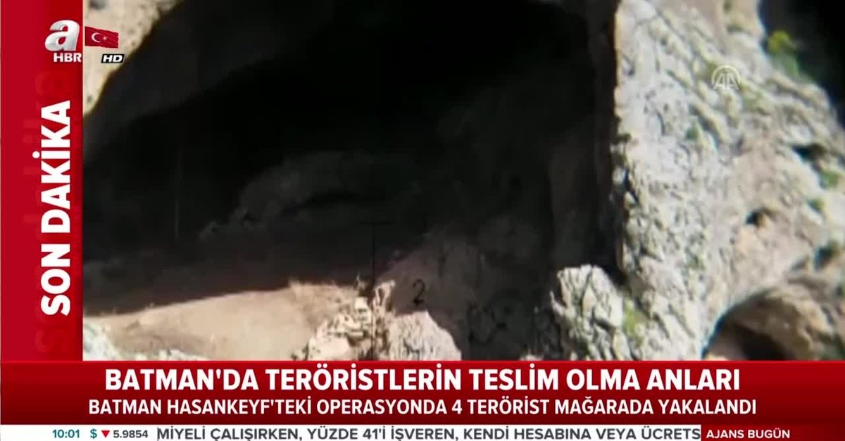 Batman'ın Hasankeyf ilçesinde önceki gün gerçekleştirilen operasyonda mağarada sıkıştırılan PKK'lı 4 teröristin teslim olma anına ilişkin görüntüler ortaya çıktı.