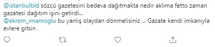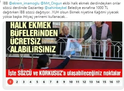 Belediye ekmeği satış noktalarında ve kapı kapı gezilerek Sözcü Gazetesi'nin dağıtılması sonrası, Sözcü pervasızlıkta sınır tanımayarak adeta posta memurluğunu yapan CHP'li belediyelere teşekkür etti.