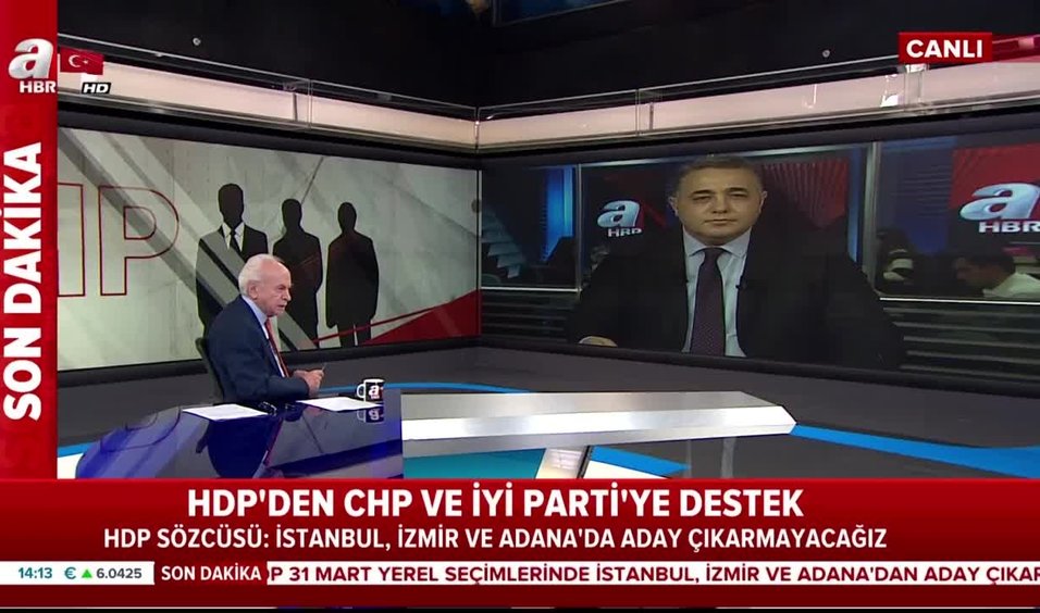 Son dakika haberi HDP, 31 Mart 2019 yerel seçimlerinde İstanbul, İzmir ve Adana’dan aday göstermeyecek. Buna göre HDP, CHP ve İyi Parti'yi destekleyecek. Takvim Gazetesi Ankara Temsilcisi Zafer Şahin, HDP'nin bu kararını A Haber canlı yayınında yorumladı.
