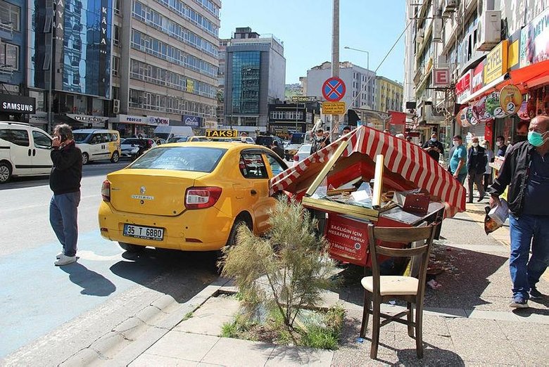 Son dakika edinilen bilgiye göre kaza saat 11.00 sıralarında Gazi Osman Paşa Bulvarı üzerinde meydana geldi. İddiaya göre durakta yolcu aldıktan sonra yola katılan belediye otobüsünü gördükten sonra otobüsten uzaklaşmak için manevra yapan K.T. idaresindeki 35 GR 9631 plakalı Renault marka araç ile sol şeritten gelen N.M. idaresindeki 35 T 6880 plakalı Renault marka ticari taksi çarpıştı. Çarpışmanın etkisiyle sürücüsünün direksiyon hakimiyetini kaybettiği ticari taksi, yol kenarında bulunan simitçi tezgahına daldı. Tezgahı enkaza dönen simitçi Metin T. ise kazada yaralandı. Kazayı gören vatandaşların durumu bildirmesi üzerine olay yerine polis ve sağlık ekipleri sevk edildi. Polis ekipleri kazanın olduğu yolda güvenlik önlemleri alırken, sağlık ekipleri yaralıyı ambulansla İzmir Alsancak Nevvar Salih İşgören Devlet Hastanesine kaldırdı. Burada tedavi altına alınan Metin T.'nin durumunun iyi olduğu anlaşıldı.