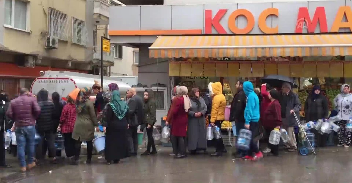 Sağanak yağış altında ellerindeki bidonlarla uzun kuyruklar oluşturan İzmirliler, yetkililere tepkilerini dile getirdi.