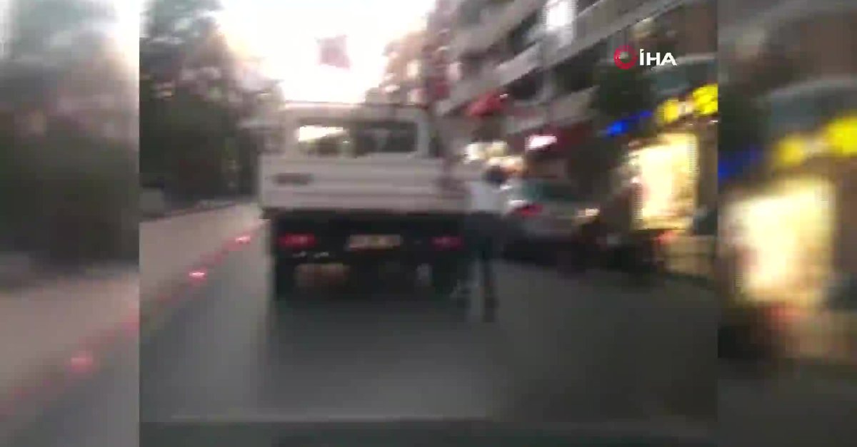 Manisa'da, seyir halindeki açık kasa kamyonetin arkasına tutunan patentli bir genç, hem kendi hem de sürücülerin hayatını tehlikeye attı. Gencin tehlikeli yolculuğu, cep telefonu kamerasına yansıdı.