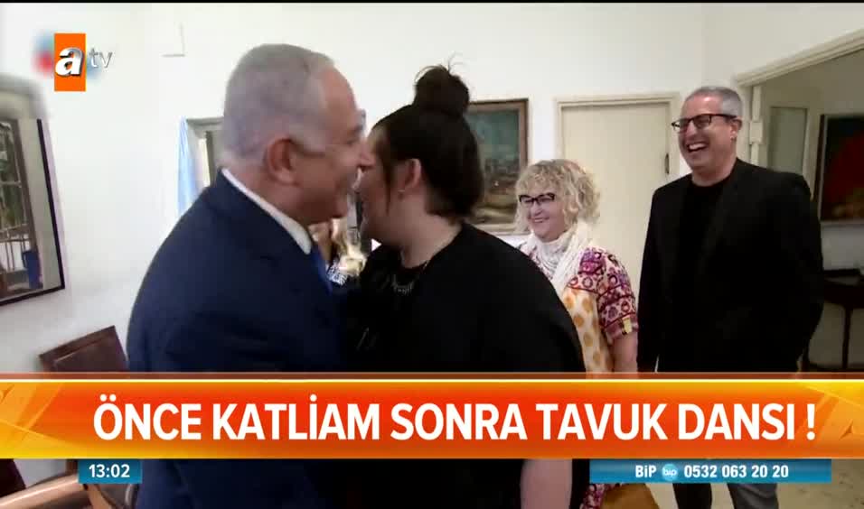 İsrail son saldırılarında 62 Filistinliyi katletti. 3 bini aşkın Filistinli de yaralandı. 54 Filistinlinin ise bitkisel hayatta olduğu açıklandı.. Tablo bu kadar acıyken İsrail Başbakanı Binyamin Netanyahu da Gazze'deki katliamın üzerine hiçbir şey olmamış gibi bir de kameraların önünde tavuk dansı yaptı...