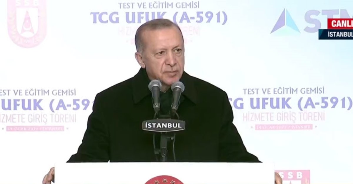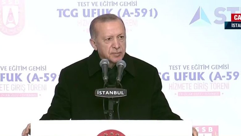 Başkan Erdoğan, İstanbul Denizcilik Tersanesi'nde düzenlenen Test ve Eğitim Gemisi TCG Ufuk'un Hizmete Giriş Töreni'nde önemli açıklamalarda bulundu. Başkan Erdoğan, Milli Savunma Sanayii alanında yapılan yatırımlara dair önemli mesajlar verdi. "Bir ilke imza atıyoruz" diyerek duyurduğu müjde de ise Erdoğan, "3 savaş gemisini aynı anda inşa ediyoruz" ifadelerini kullandı.