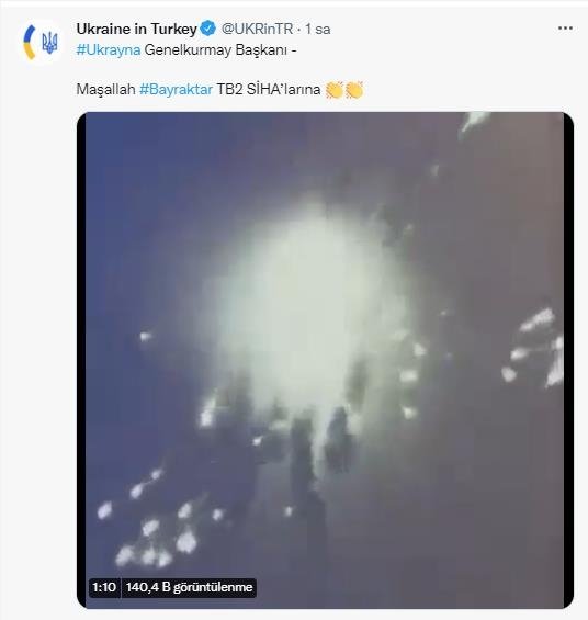 Paylaşımda, "Ukrayna Hava Kuvvetleri, Bayraktar TB2 SİHA'ları kullanarak Kherson şehrine giren Rus konvoyu etkisiz hale getirdi" ifadeleri kullanılmıştı.