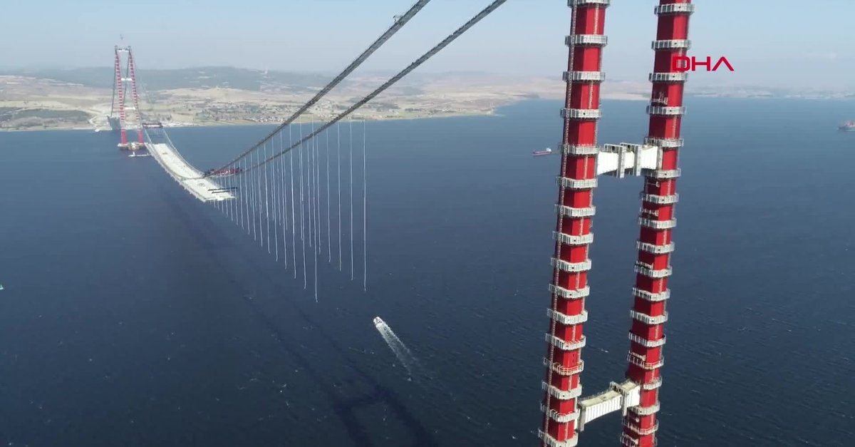 Çanakkale Boğazı'nda Avrupa ve Asya kıtalarını ilk kez birbirine bağlayacak 1915 Çanakkale Köprüsü'ne 30 tabliye blokunun montajı yapıldı. Cumhuriyetin 100'üncü kuruluş yılını simgeleyen kuleler arasındaki 2023 metrelik orta açıklıkta, her biri 45 metre genişliğinde, 48 metre uzunluğunda ve 700 ton ağırlığındaki mega tabliye bloklarının birleştirilmesiyle Çanakkale Köprüsü'nün yolu da görünmeye başladı. 18 Mart 2022'de hizmete açılması planlanan köprü sayesinde Çanakkale Boğazı, 6 dakikada geçilecek ve kesintisiz ulaşım sağlanacak.