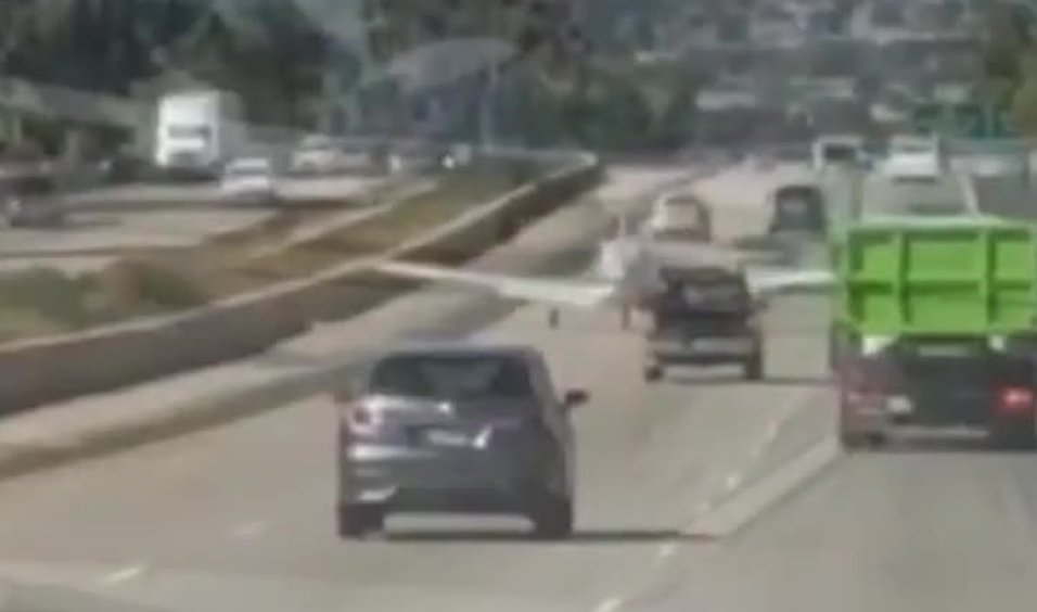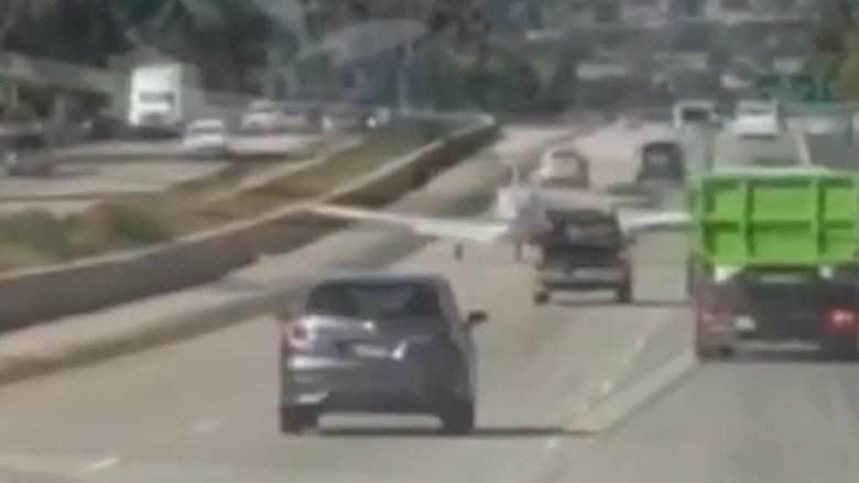 ABD San Diego'da, içinde 2 kişinin bulunduğu tek motorlu uçak acil bir durum nedeniyle otoyola indi.