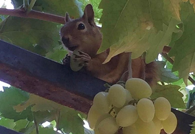 Manisa'nın Sarıgöl ilçesi Aşağıkoçaklar Mahallesi Şehit Ali Suyabatmaz Caddesi'nde oturan ve bakkallık yapan 45 yaşındaki Nahit Çof isimli esnaf evinin bahçesindeki çardakta bulunan parmak üzümlerin her geçen gün azaldığını fark etti. Eviyle dükkanın yan yana olması dolayısıyla dışarıdan kimsenin gelip de üzümleri alamayacağını dile getiren Çof, bir gün evinin bahçesinde kahvaltı yaparken çardaktaki üzümlerden gelen sesle neye uğradığını şaşırdı. Sese doğru yönelen Çof bir sincabın üzümleri afiyetle yediğini fark edince o anları cep telefonuyla kayda aldı. Görüntülendiğini fark eden sincap ise kısa bir süre sonra ortadan kayboldu.