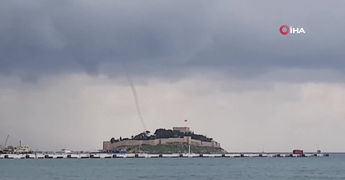 Kuşadası açıklarında oluşan hortum heyecana neden oldu. Soğuk ve yağışlı hava etkisini sürdürmeye devam ederken, yağışlarla birlikte güney ve batı yönünden zaman zaman kuvvetli rüzgar esiyor. Kuşadası açıklarında akşam saatlerinde görülen hortum kısa süreli heyecana neden oldu. Karadan yaklaşık 800 metre açıkta oluşan hortum 5 dakika deniz üzerinde ilerlemesinin ardından karaya ulaşmadan kayboldu. Görüntüleri kayıt altına alan vatandaşlar kısa süreli heyecan yaşadı. İşte o anlar...