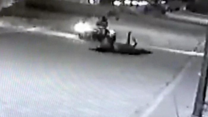 Bu sırada yoldan geçen motosikletli kurye, karanlıkta ipi fark etmedi. İpe takılan motosiklet devrilirken, sürücü ayakta kalmayı başardı. İpin bir anda gerilmesiyle yola düşen at da kalkarak olay yerinden uzaklaştı.