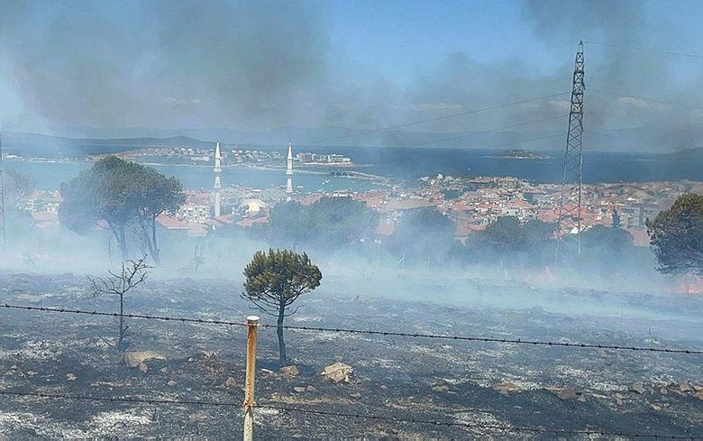 Balıkesir'in Ayvalık ilçesinde, kırsal alanda çıkan örtü yangınına karadan ve havadan müdahale edildi. Yangın kısa sürede kontrol altına alınarak söndürüldü.